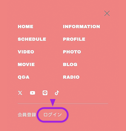 右上にあるメニューをクリックし、「ログイン」ボタンをクリック!